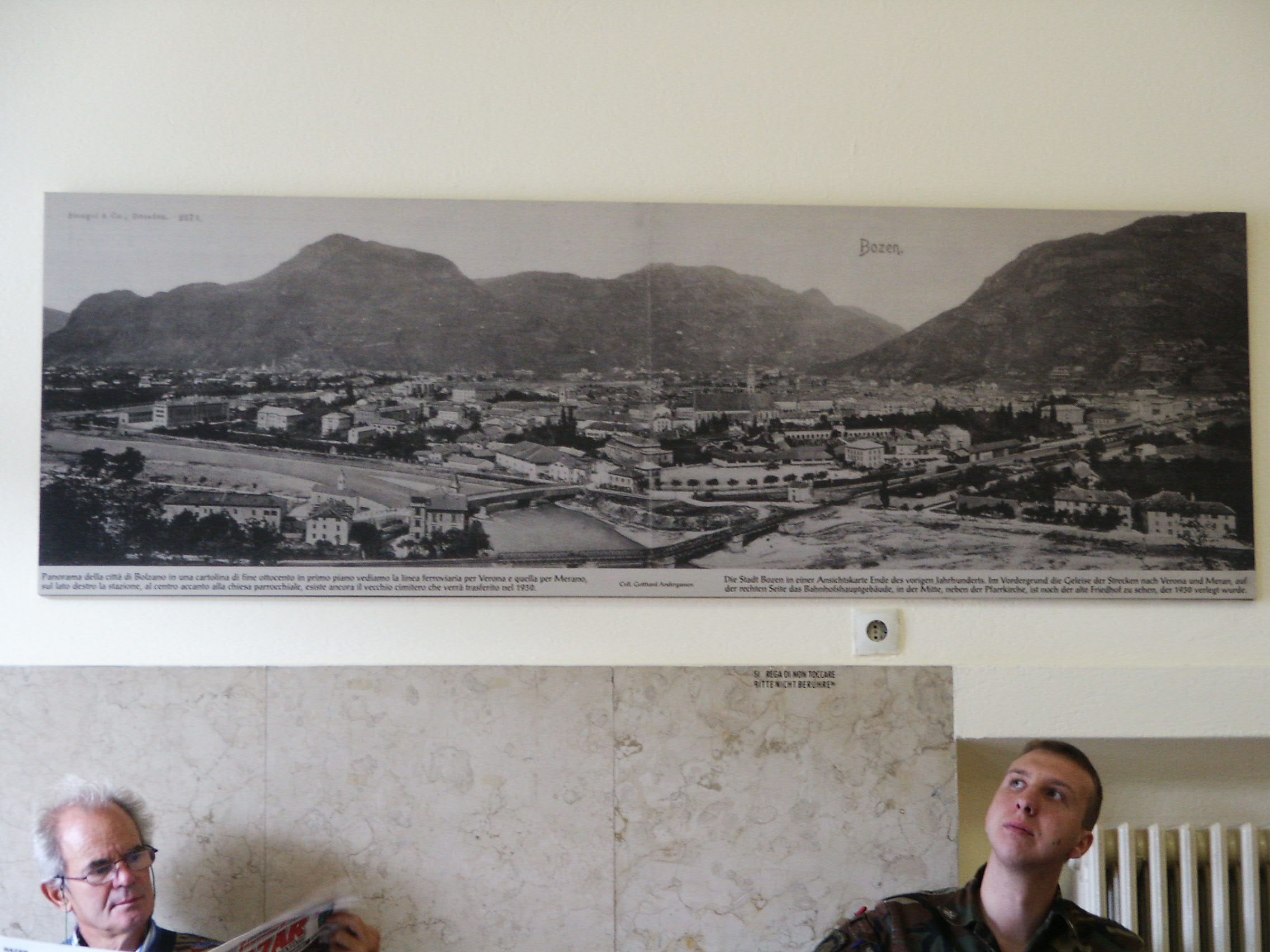 Bolzano/Bozen Rail station a old drawing aof bollzano (1930) 25/Aug/2004